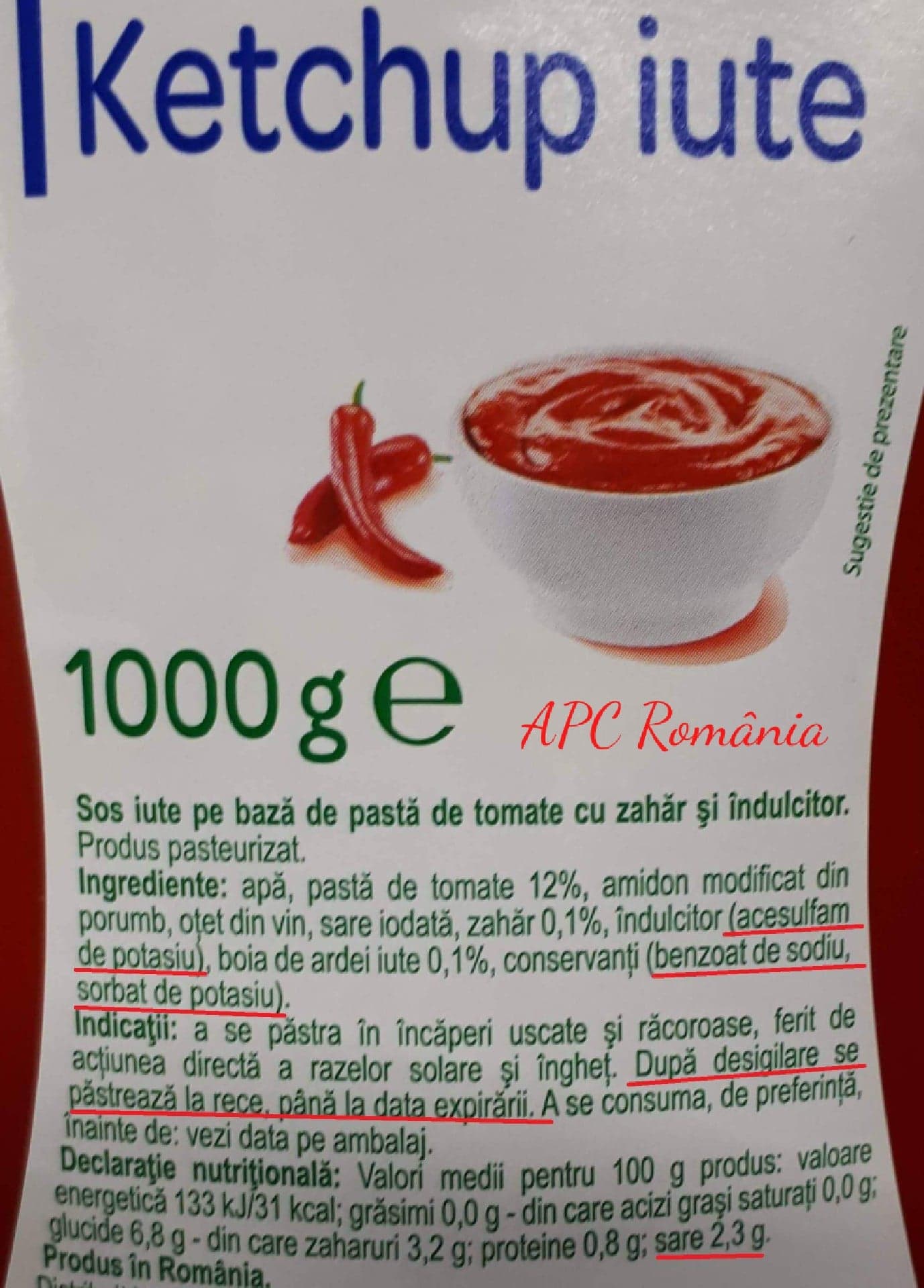 Ketchup cu aromă de tomate, sucraloză şi conservanţi!
