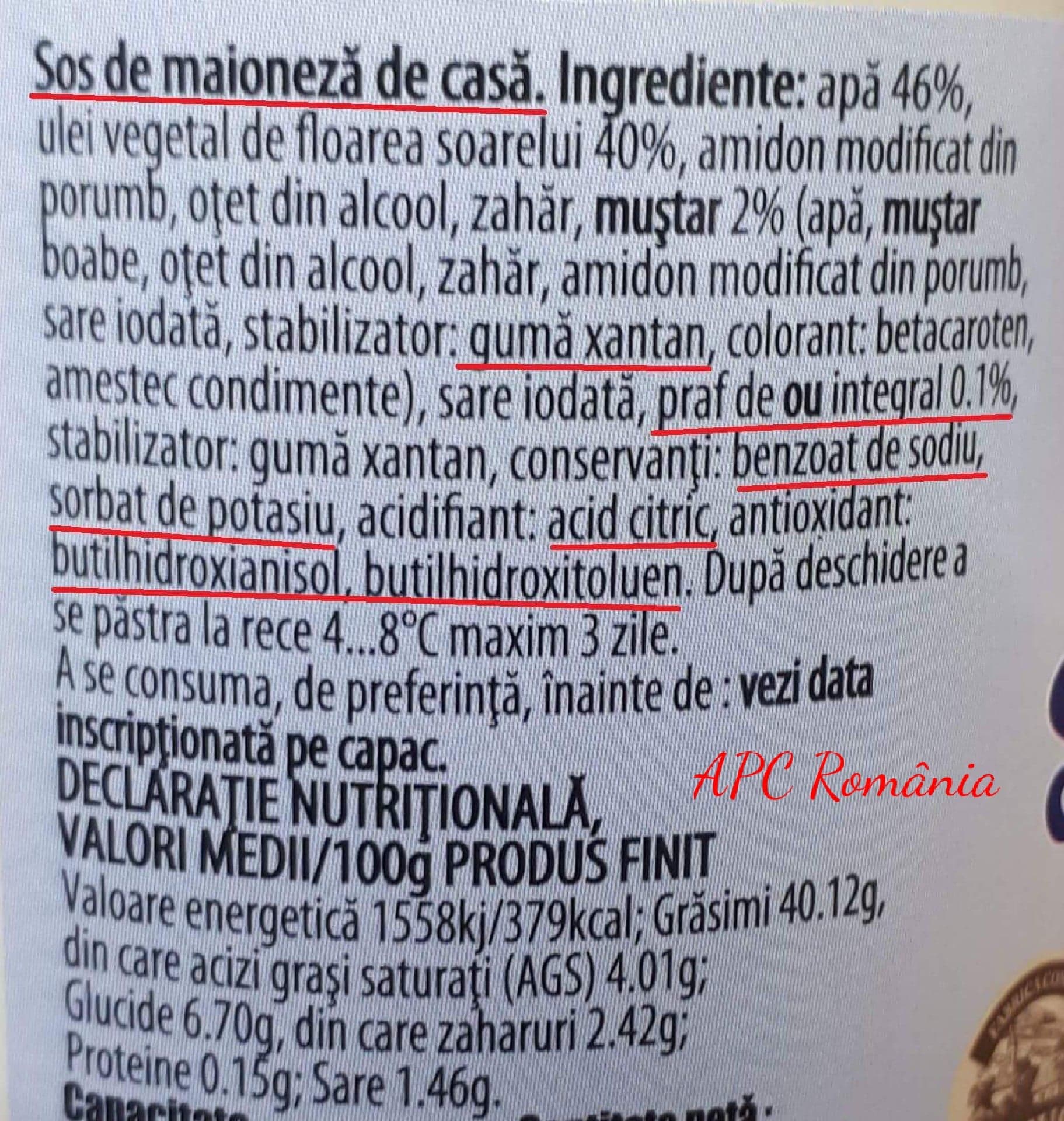 Un sfert din sosurile de maioneză analizate conţin câte 7 substanţe chimice!