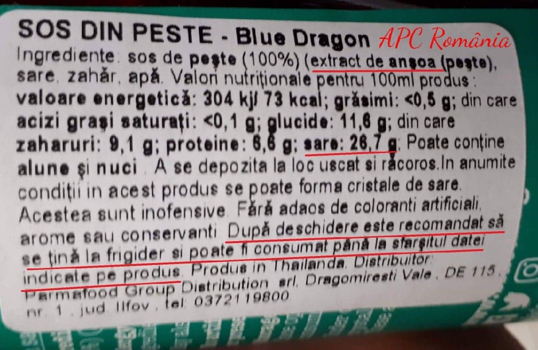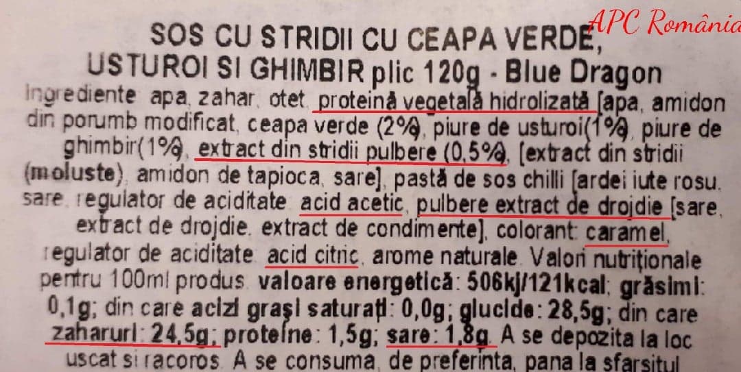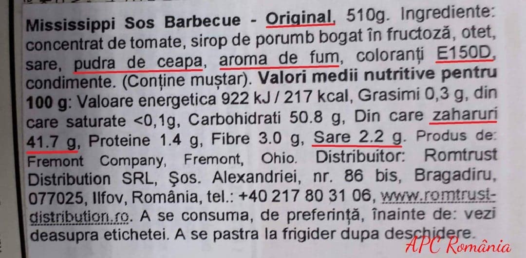 Asociația Pro Consumatori (fostă Asociaţia pentru Protecţia Consumatorilor din România - APC România, înfiinţată în anul 1990), organizaţie de utilitate publică, membră a Organizației Europene a Consumatorilor, a analizat conţinutul a 155 de sosuri comercializate în marile structuri comerciale. Acest studiu face parte din Campania Națională de Informare și Educare: ”Să învățăm să înțelegem eticheta!”.